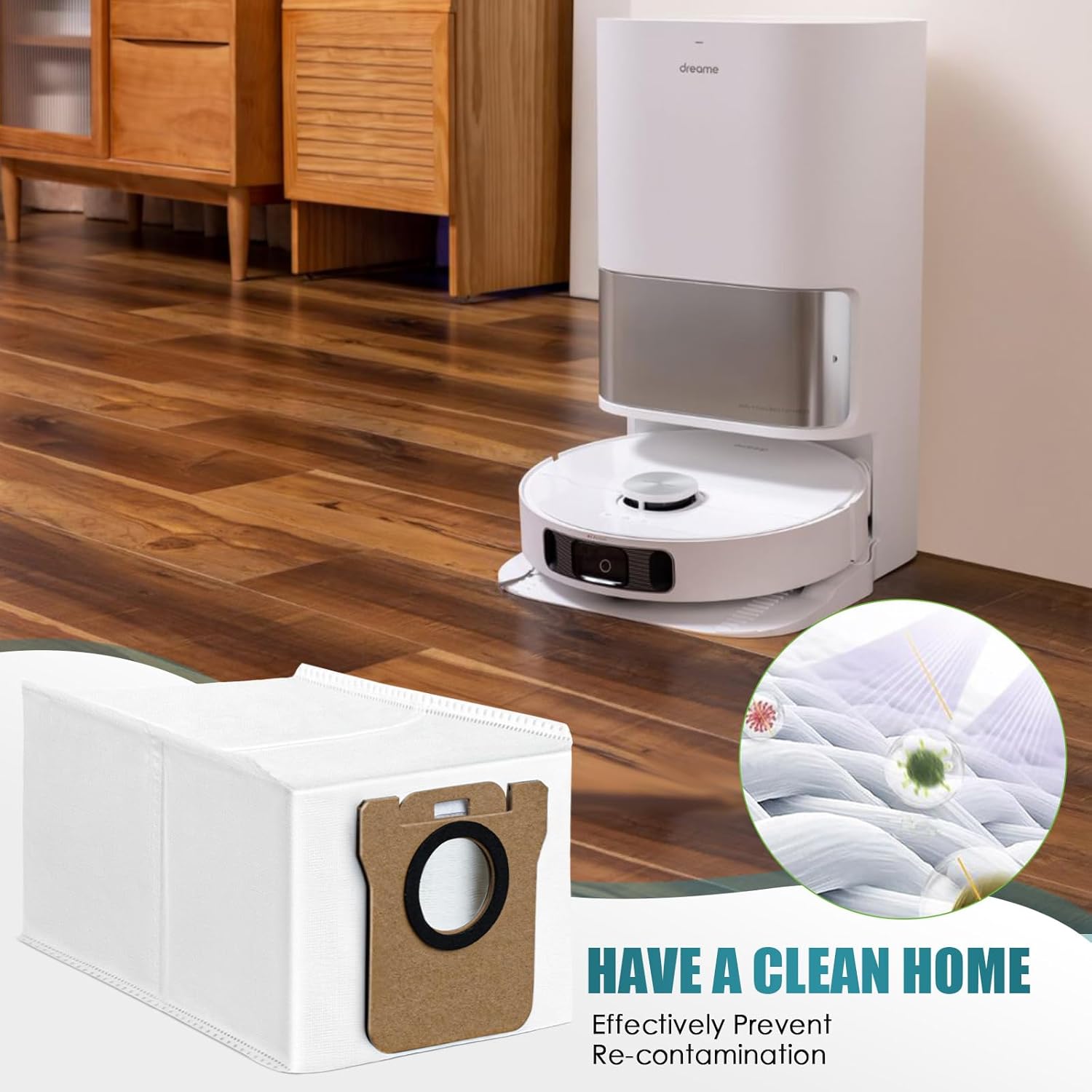- High Efficiency Filtration: Made of a 2-layer superfine melt-blown fiber filter 1layer and 2-layer non-woven fabrics,these Vacuum Bags Compatible with Dreame L20 Ultra, can collect 99% of the dirt and reducing the penetration of the dust and other dust particles