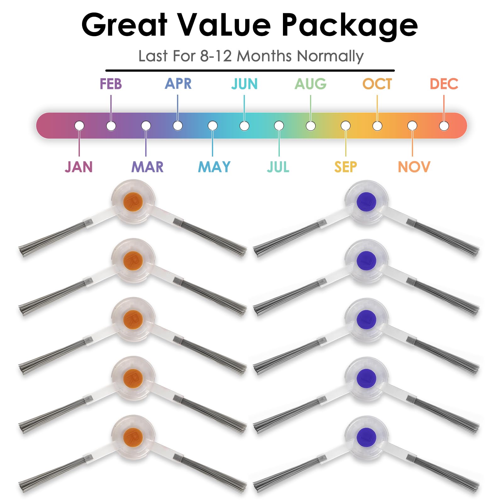 - 【Great Value Package】This package will come with 10 pieces(5 pairs) of high quality side brushes. It is a cost-effective choice to supplement the replacement robot vacuum accessories for your robotic vacuum cleaner.