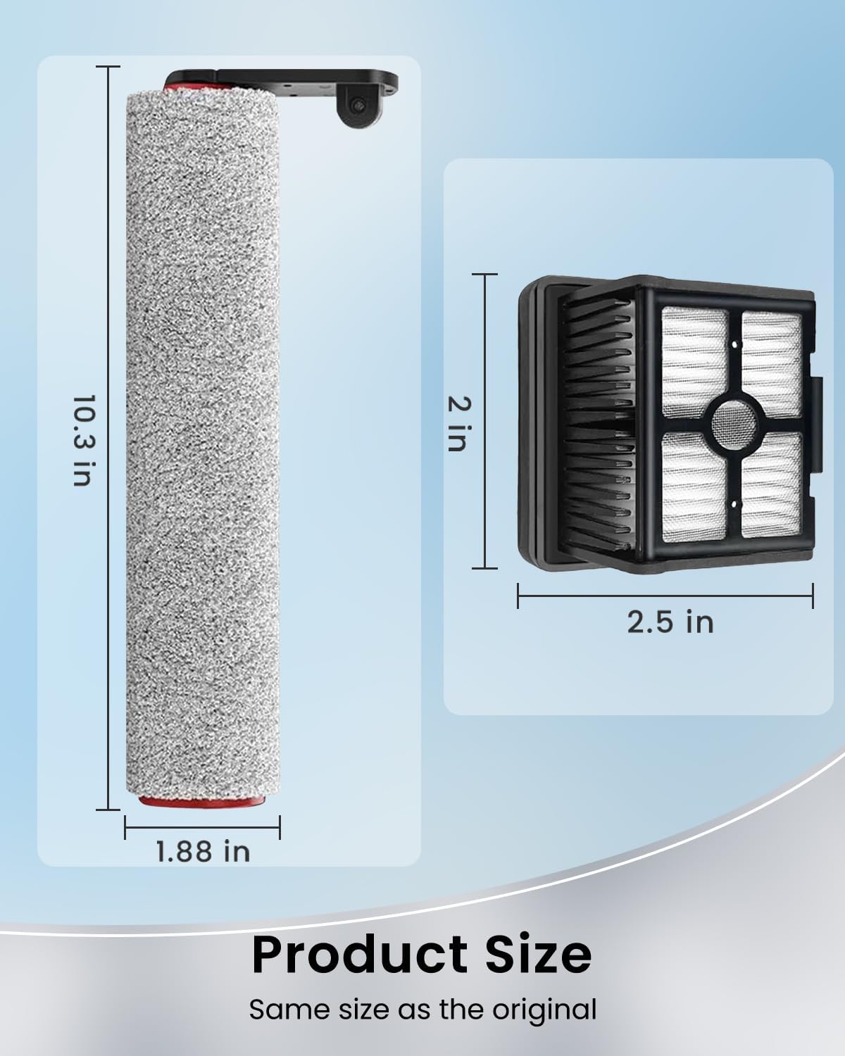 - EXCELLENT PREMIUM QUALITY:You will receive 2 replacement soft roller brushes and 3 vacuum filters, to replace your old ones in time and back up.1 cleaning tool with blades to help you get rid of tangled hairEngineered with a flat cylindrical structure, our brush rollers ensure gentle yet effective cleaning on various hard surfaces, including laminate, linoleum, sealed wood floors, marble, and tiles.