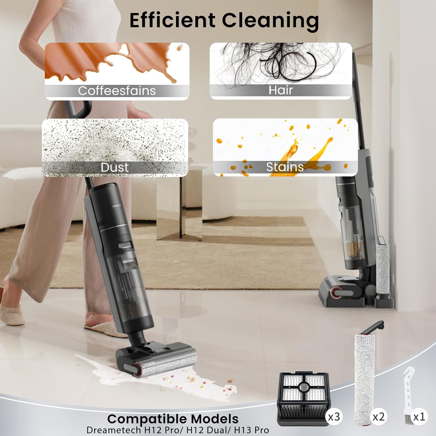 - PERFECT COMMPATIBILITY MODEL:The Brush and Filter Sets replacement Accessory Kit are specially developed for Dreame H12 Pro/ H12 Dual cordless wet dry vacuum cleaner. It is not compatible with other models, , Please make sure your model is correct before order.