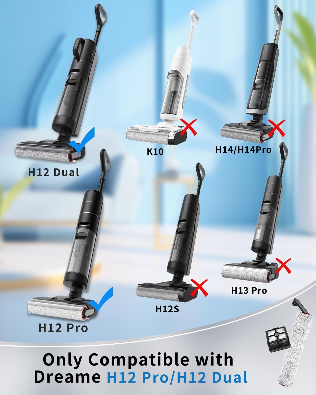 - PERFECT COMMPATIBILITY MODEL:The Brush and Filter Sets replacement Accessory Kit are specially developed for Dreame H12 Pro/ H12 Dual cordless wet dry vacuum cleaner. It is not compatible with other models, , Please make sure your model is correct before order.
