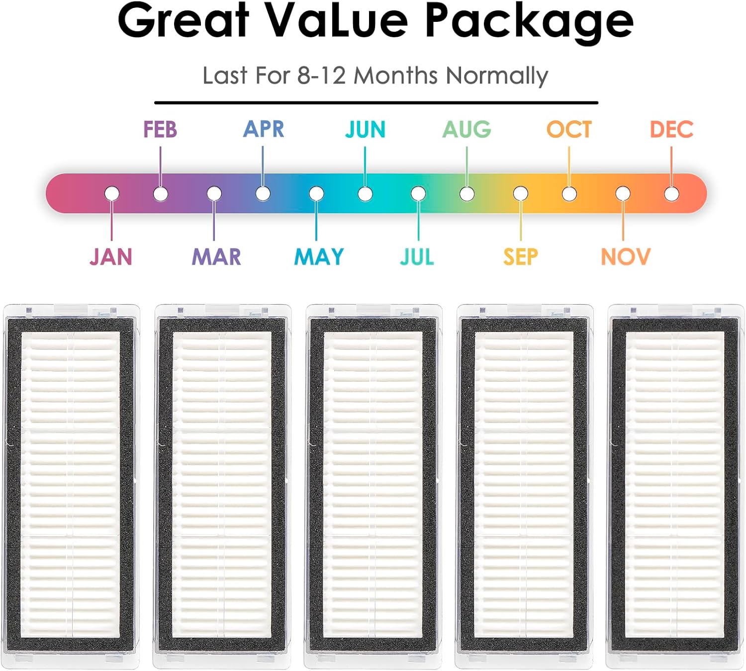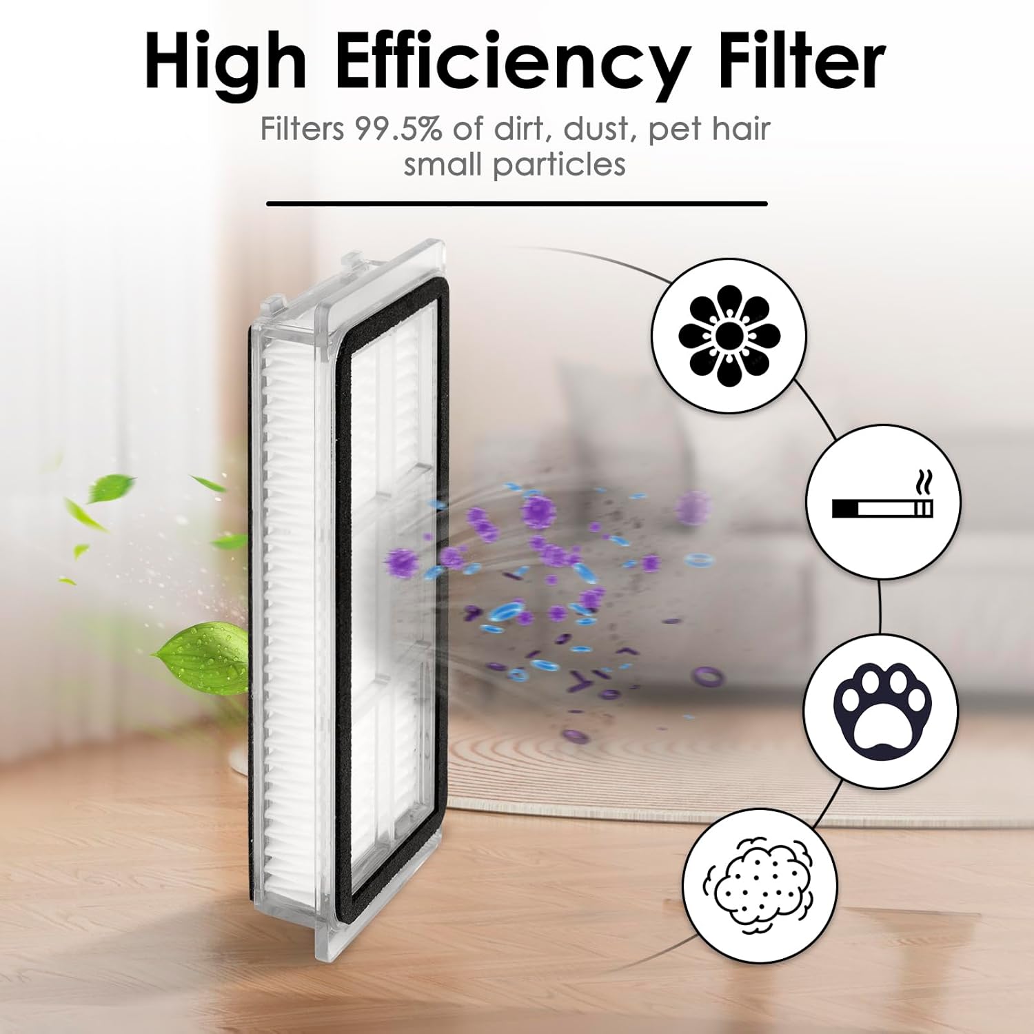 - 【Excellent Performance】The HEPA filter of the latest version is with stronger capabilities to filter up to 99.9% of the dirt, pollen, particles and substances and also expels non-allergenic fresh air .To keep your vacuum at peak performance, it is recommended to replace the filter every 1-2 months to effectively prevent dust from entering the engine and prolong the service life of the robot vacuum.