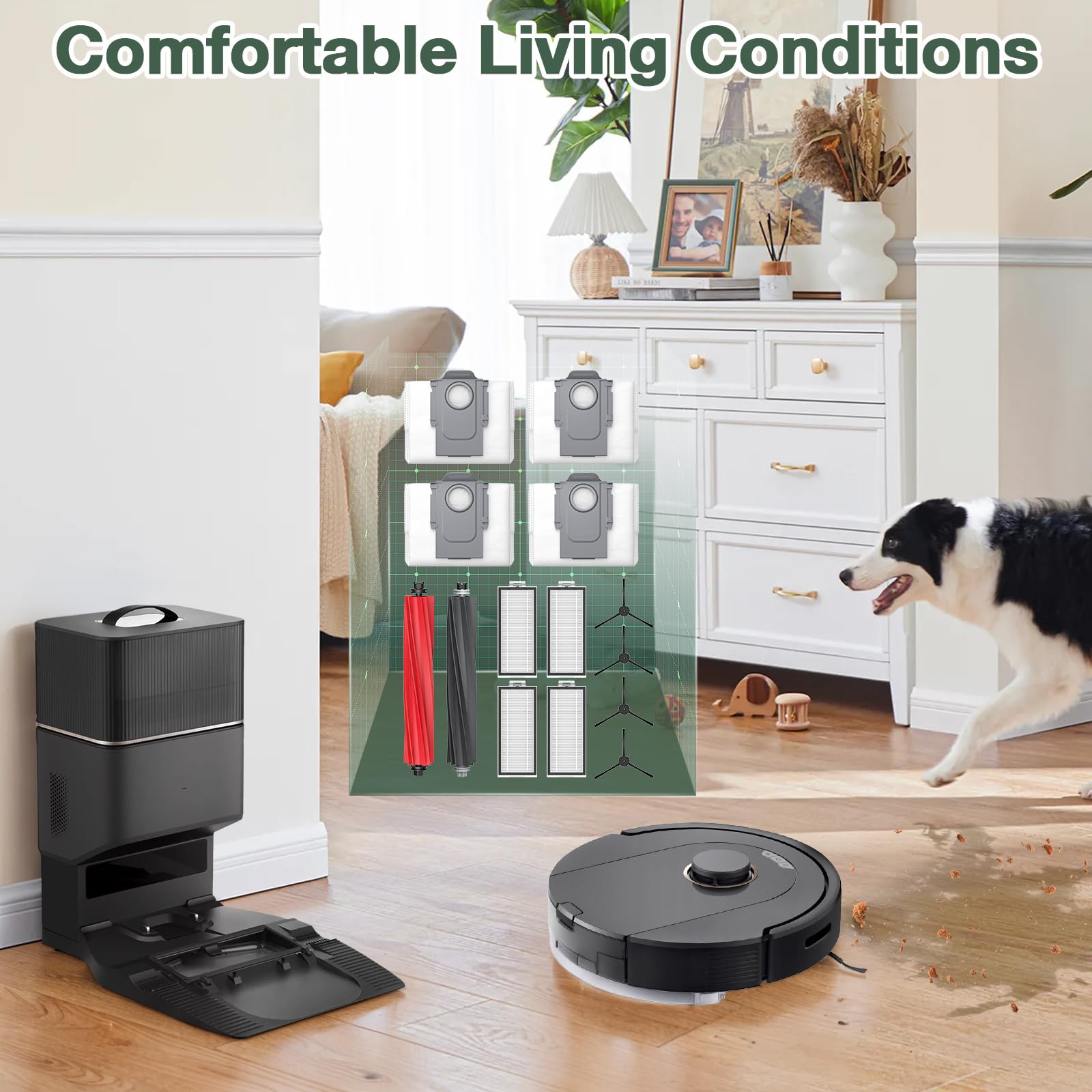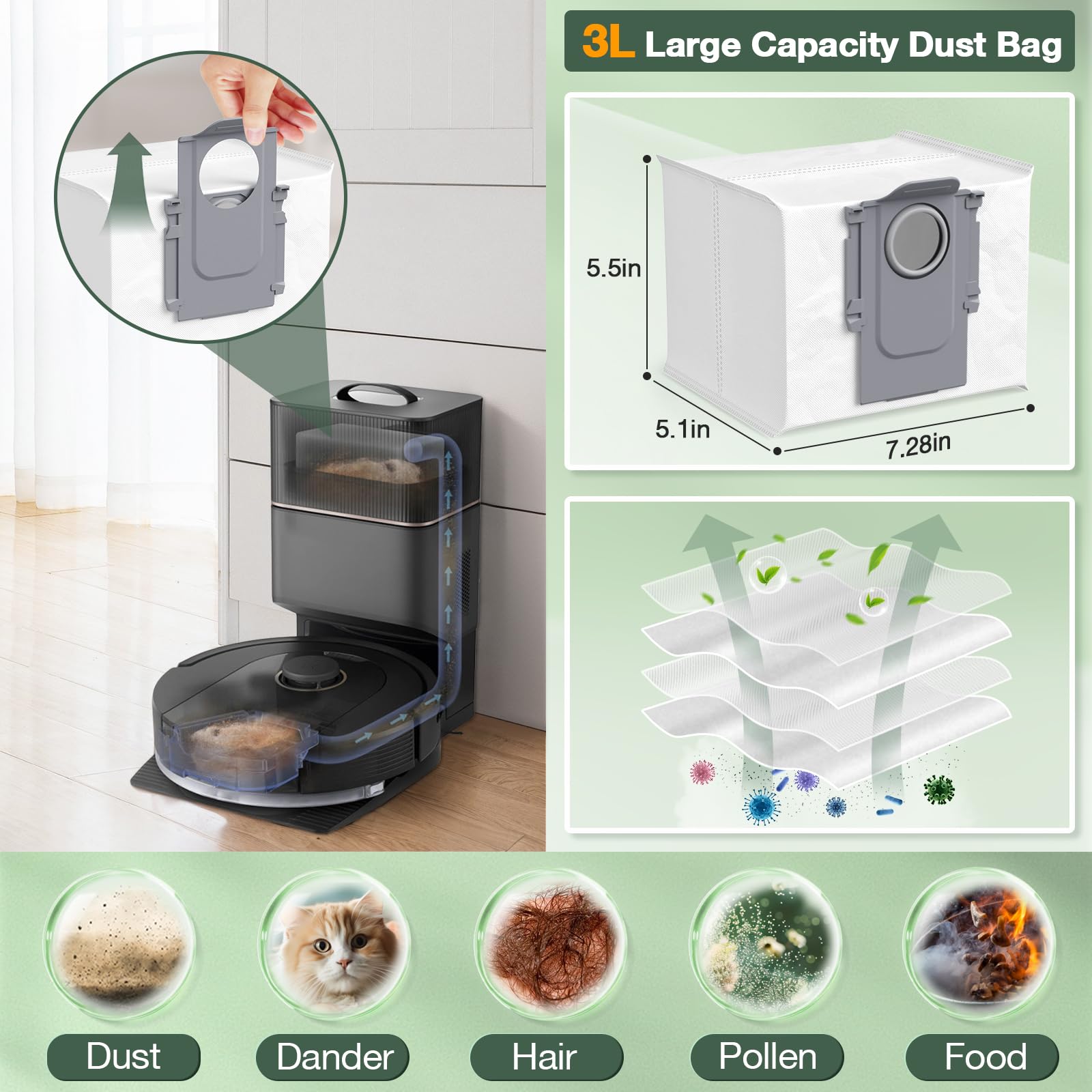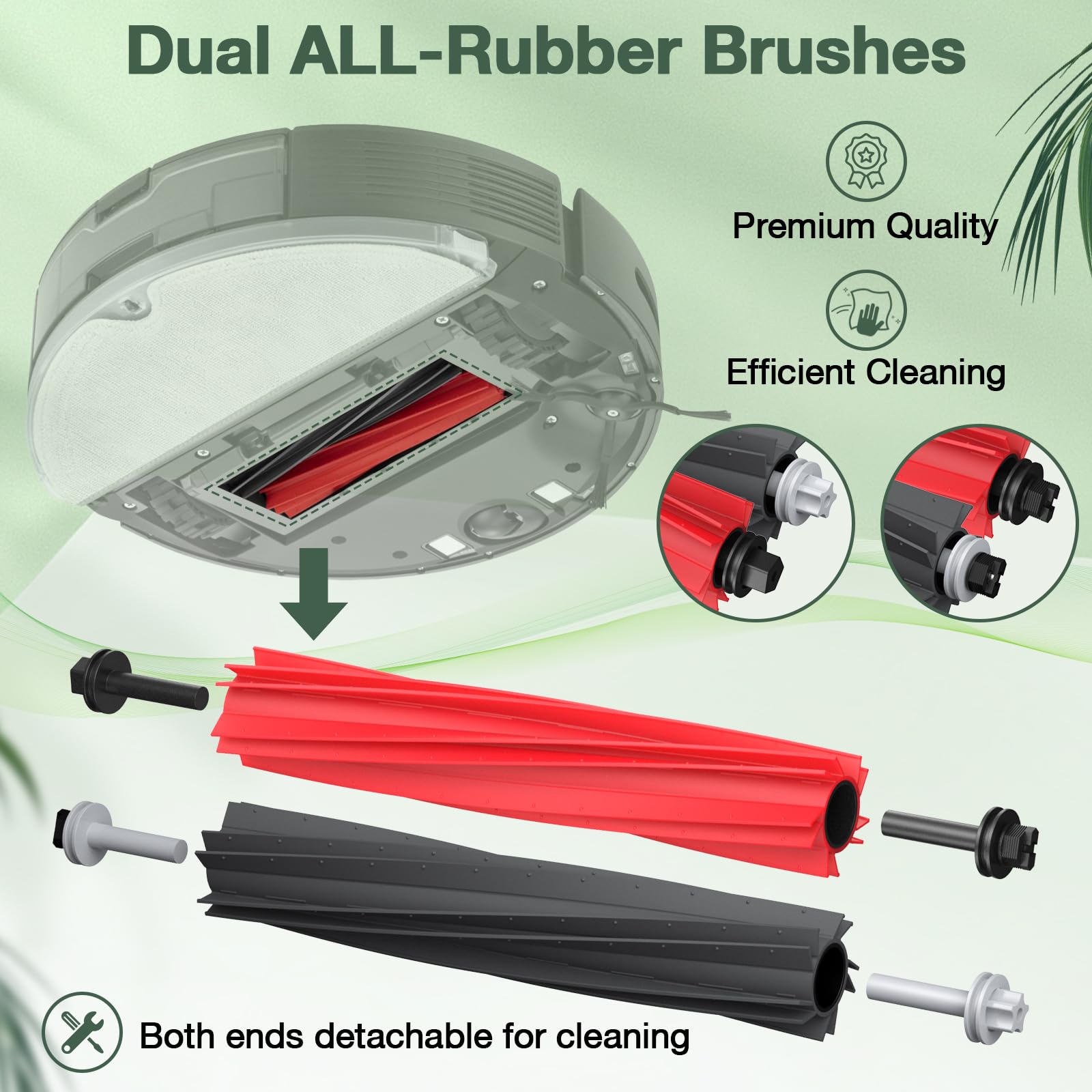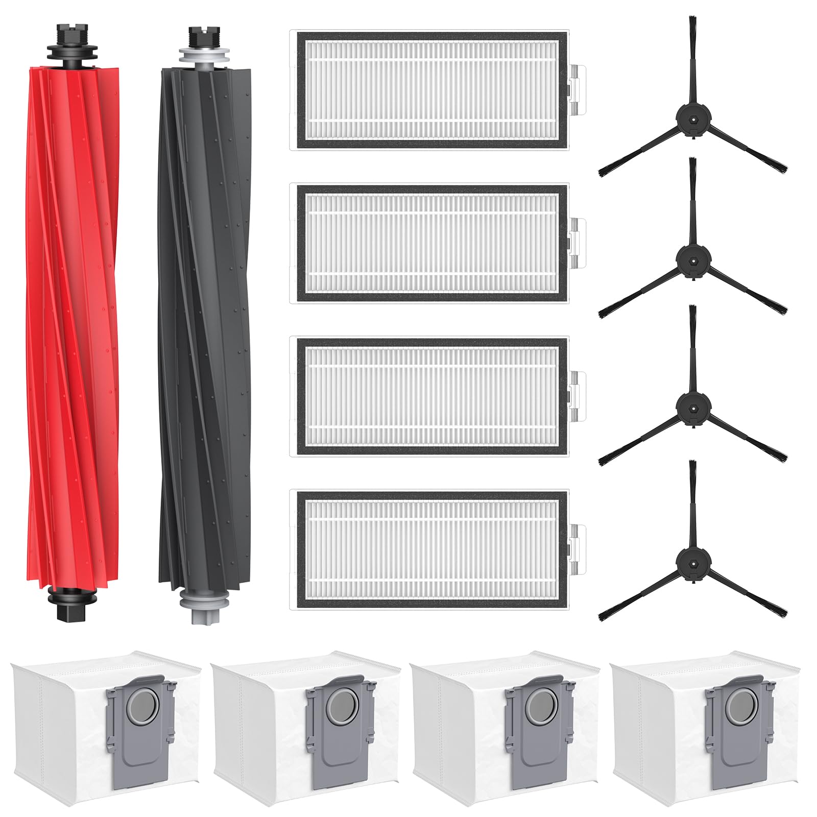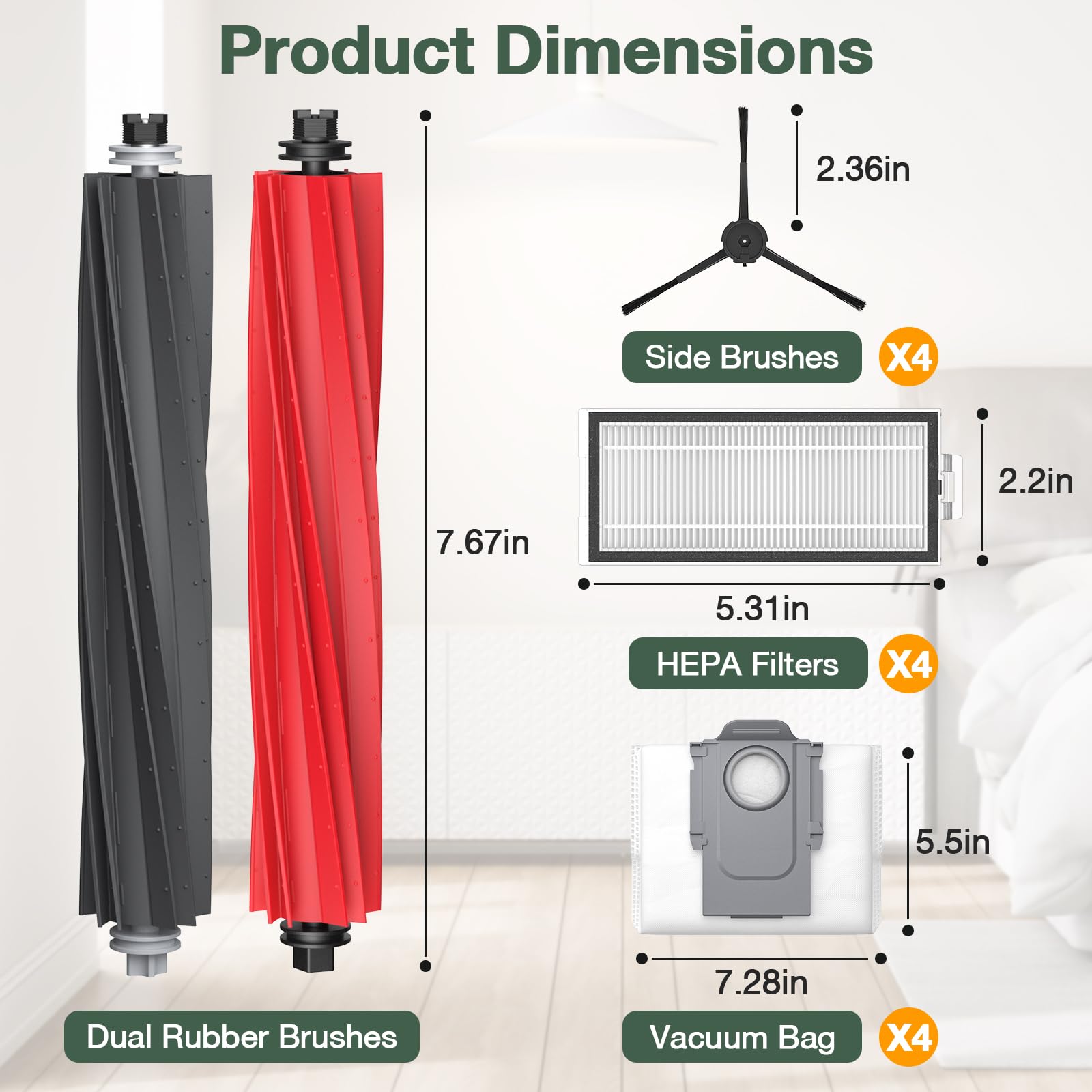 - 【Compatible Model】: The replacement parts are compatible with Roborock Q5 Max+, Q5 DuoRoller+, Q5 Pro+, Q8 Max+ robot vacuum cleaners. Package included dual main roller brush, 4 side brushes, 4 washable filters, and 4 disposable dust bags.