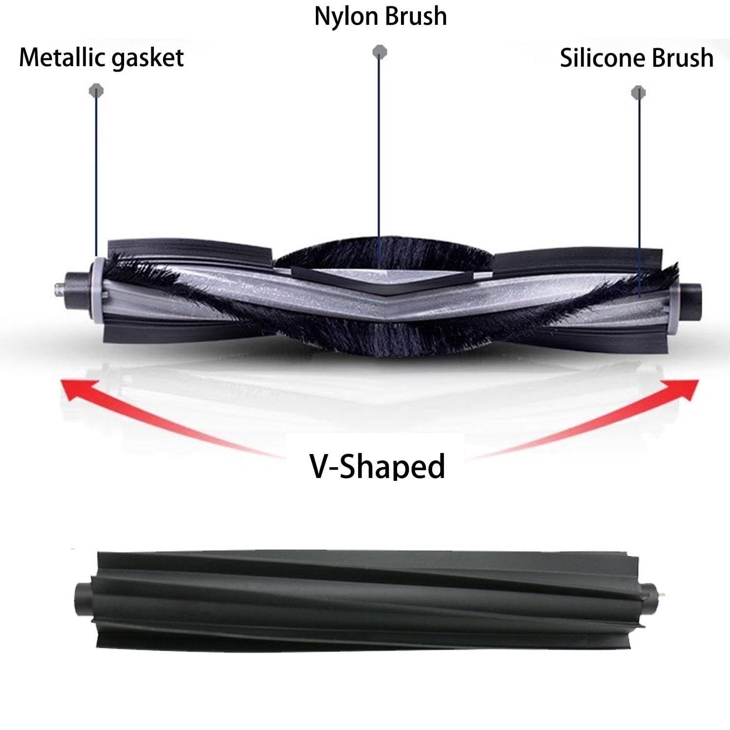 • The replacement main brush is made of high-quality ABS rubber, snaps quickly, and can be easily replaced without any tool. Soft silicon side brush reaches deep into corners and edges to remove more dirt, dust, and debris.