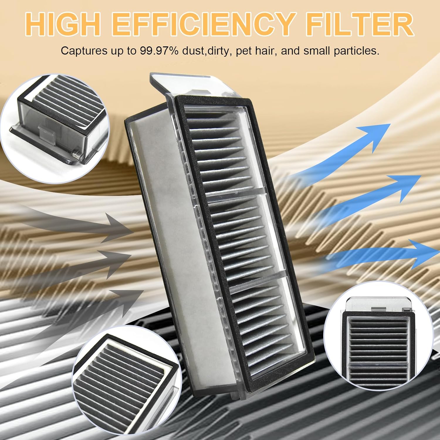 - [Set includes]: 4 Rubber Main Brush+ 6 Filters+ 6 Dust Bags+8 Mop Pads+6 Side Brushes
