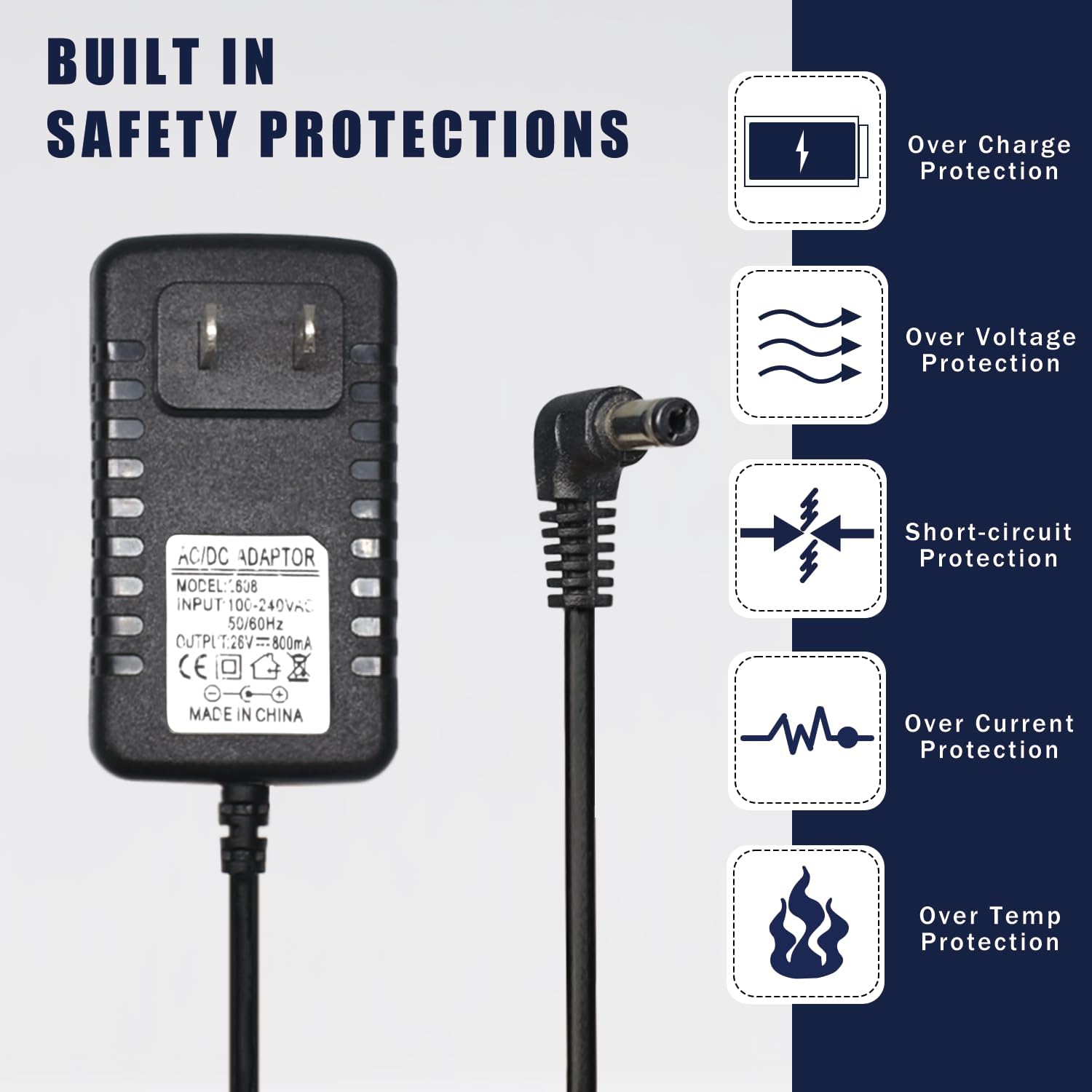 - 【Multiple Protection】Built-in smart IC chip, provide your adapter the protection of over power, over current, over voltage, over temperature, short circuit, ensure charging safety.