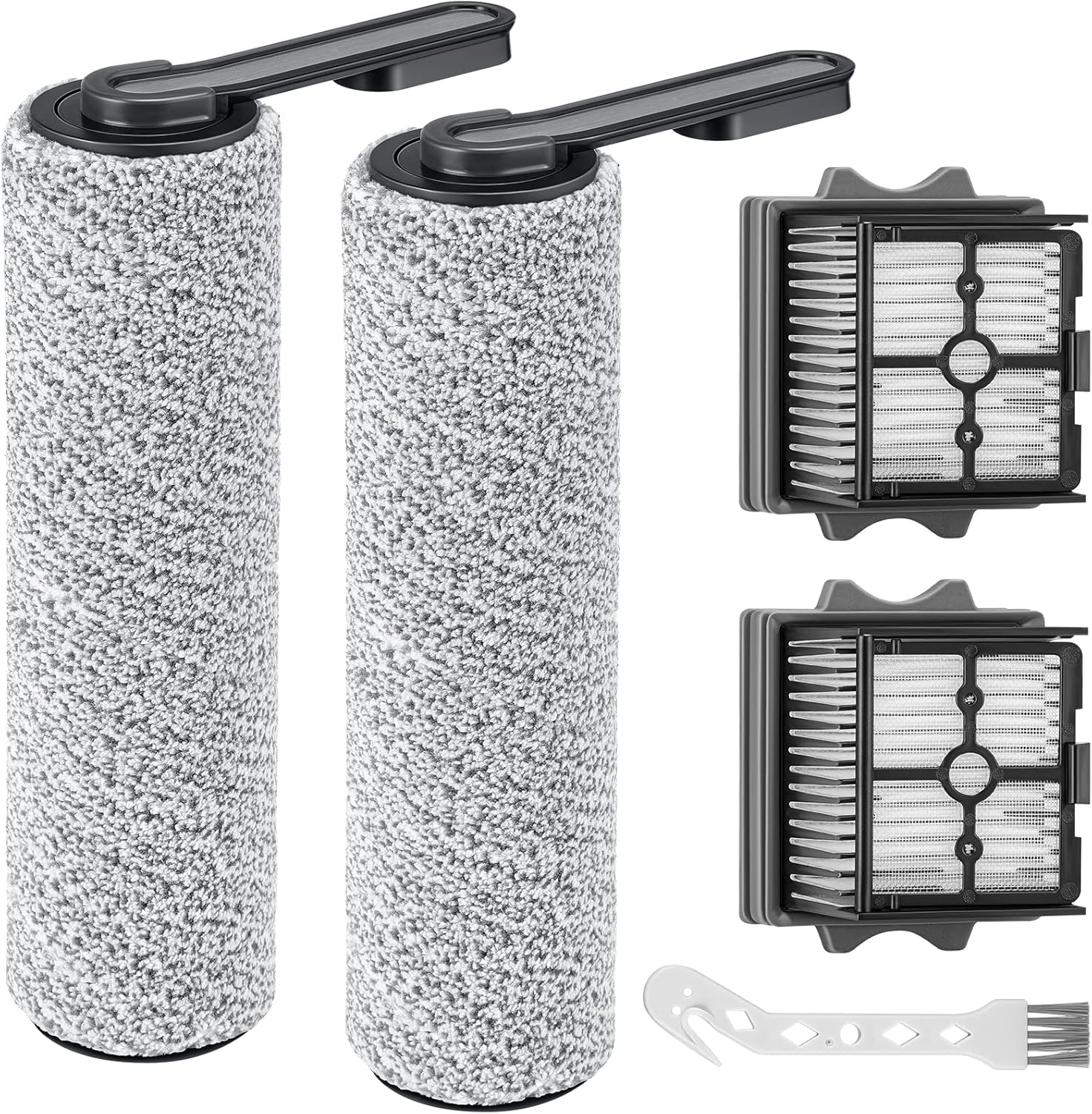 【Only S5 Combo】Brush Roller Replacement Parts for Floor ONE S5 Combo Cordless Wet Dry Vacuum Cleaner, 2 Pack Brush Rollers + 2 Pack Vacuum HEPA Filters (Only Fit S5 COMBO)