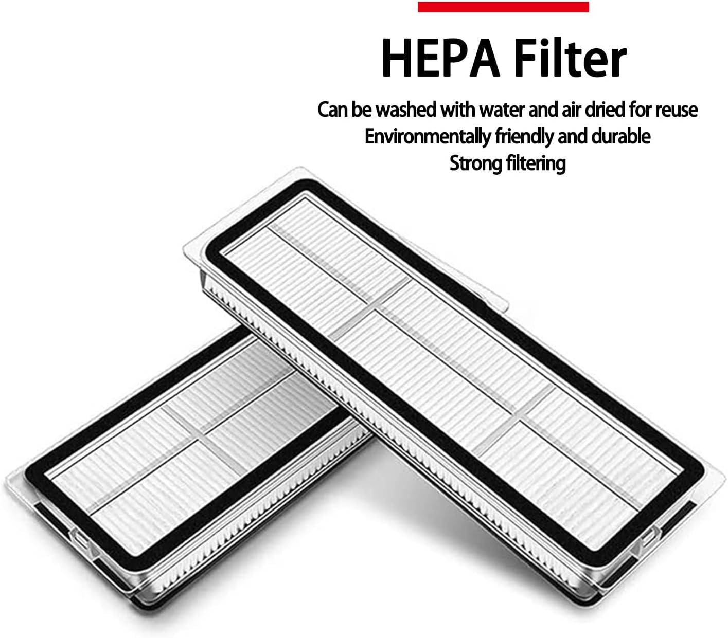 - ▲Package includes: 2Main brush, 6Side brush, 6HEPA Filter, 6Dust bag 6Mop cloth