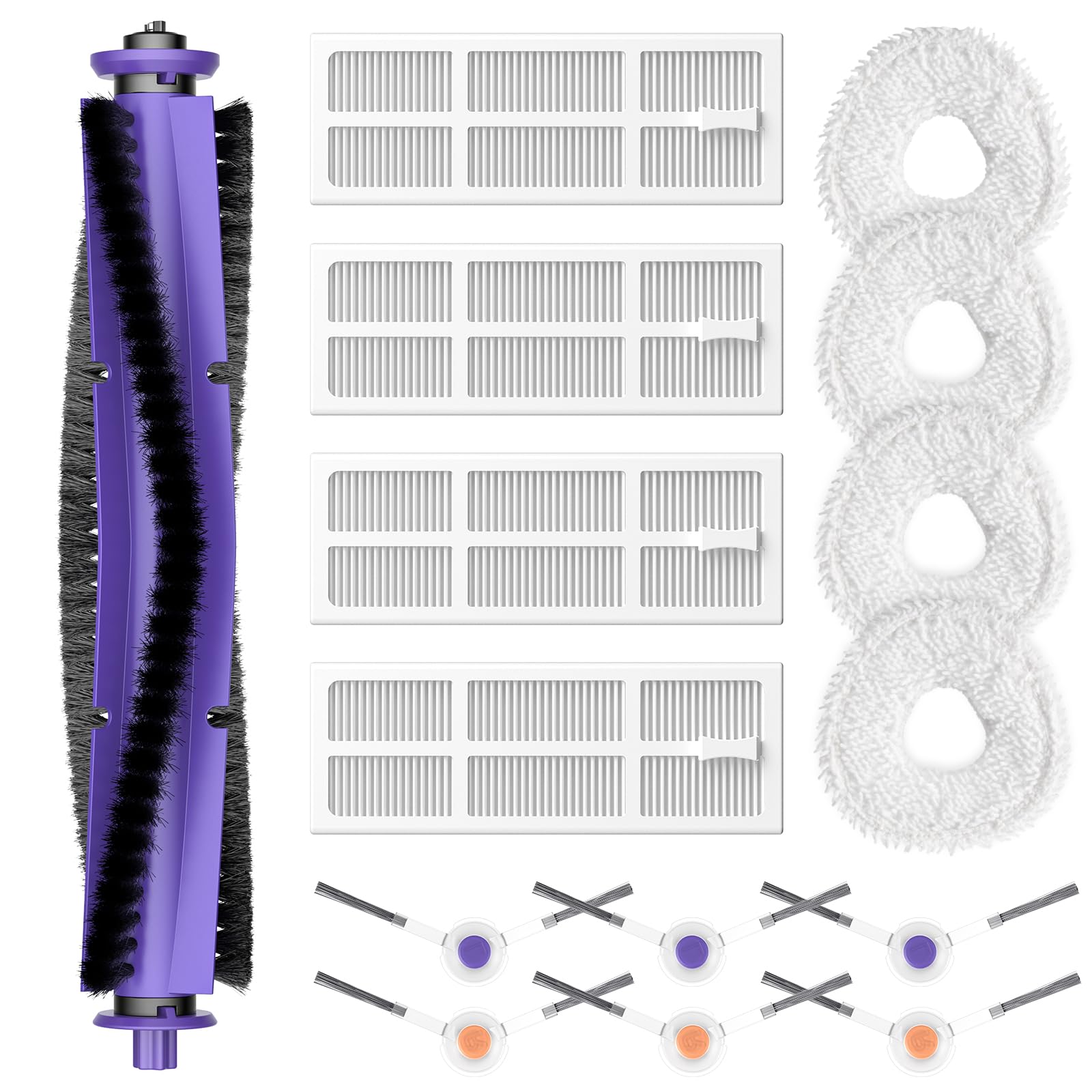 - 【VALUABLE PACKAGE】It contains 1 main roller brush, 4 mop pads, 4 HEPA filters, 6 sides brushes. This package offers thorough cleaning and great value, making it an economical and practical choice for your cleaning needs.
