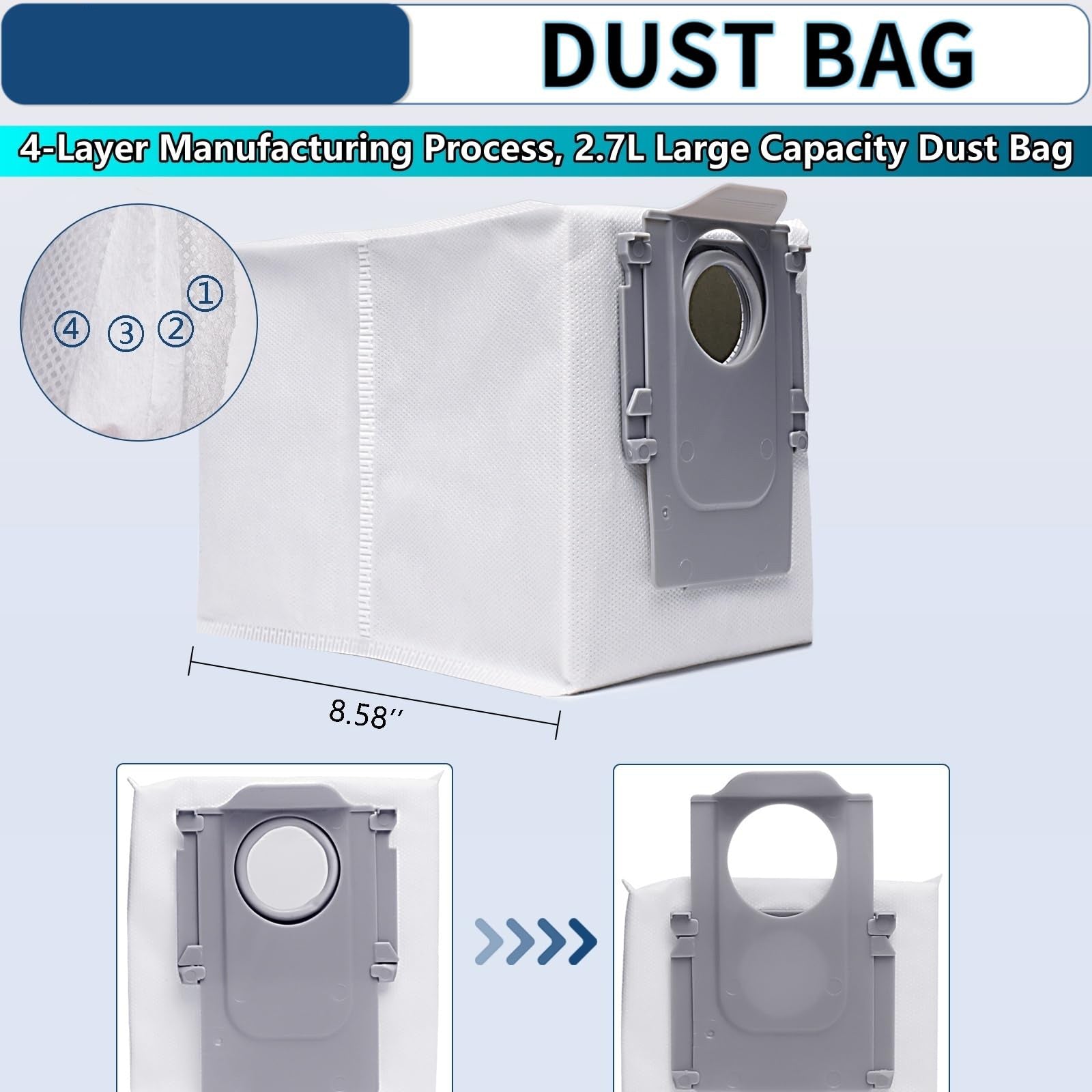 - 【Kit includes】The package includes 1 multi-surface rubber brush, 4 mop pads, 4 HEPA filters, 4 side brush, 6 Vacuum collection bags, and a mounting screwdriver.